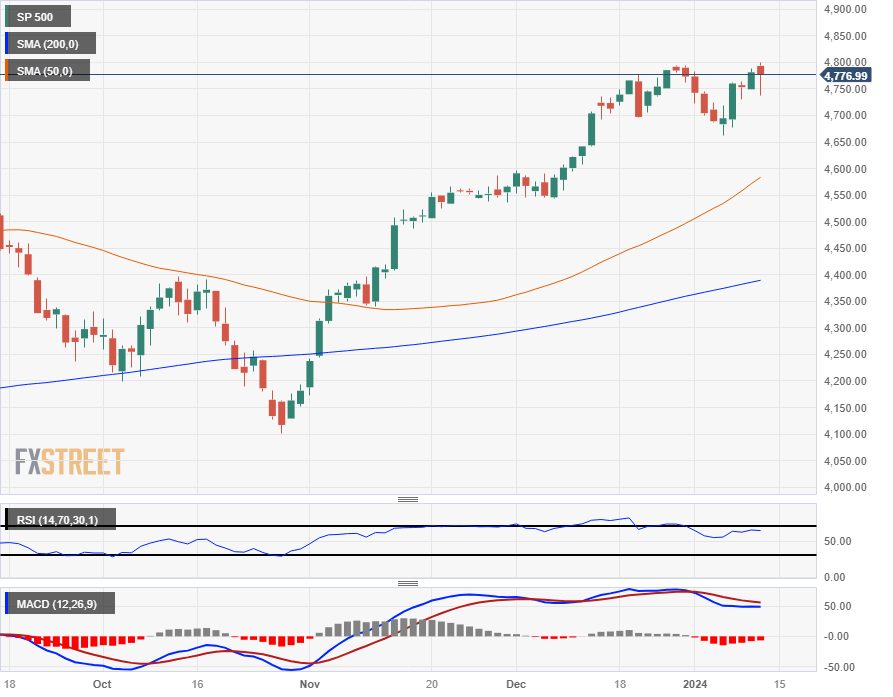 US equity indexes are largely unchanged for Thursday, with the Standard & Poor’s (S&P) 500 major equity index ended Thursday down a scant 0.07%, sliding 3.2 points to end the day at $4,780.24. The Dow Jones Industrial Average (DJIA) closed at $37,711.02, up nearly 15.3 points and shaving into the green by 0.04%.