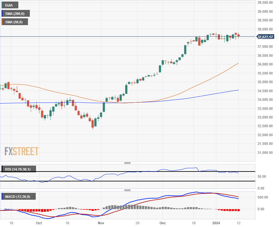 The DJIA remains trapped in near-term consolidation, trading into familiar levels that have plagued the major equity index since climbing to record highs in December. A hard ceiling has been priced into intraday charts from $37,800.00 as intraday price action trades back into the 200-hour Simple Moving Average (SMA) just above $37,500.00.
