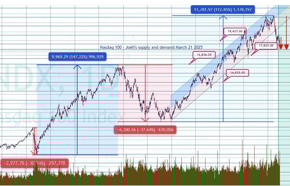 Nasdaq plunges 20%, S&P 500 and Dow Jones tumble as Trump’s tariffs spark full-scale correction—historical patterns signal deeper losses ahead
