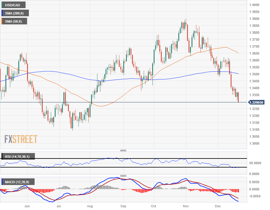 The USD/CAD eased into 1.3300 as the Canadian Dollar (CAD) gets one last crack at the handle as markets gear up for the holiday shutdown with a broad-base selloff of the US Dollar (USD).