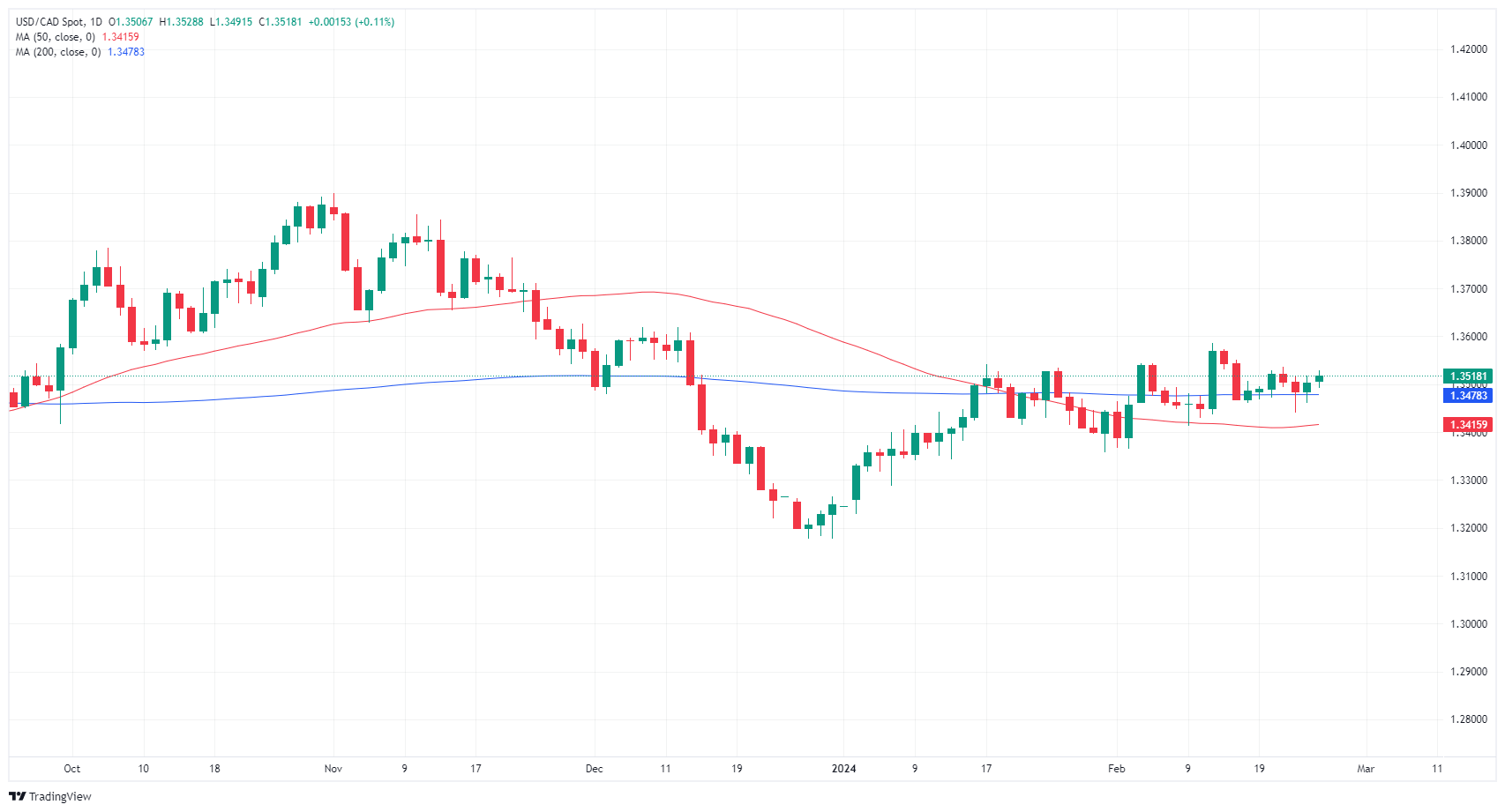 USD/CAD is stuck in a slow drift near 1.3500 as markets gear up for the week. Economic data remains thin on Monday, and traders will be looking ahead to Tuesday’s US Durable Goods Orders for January, as well as Wednesday’s US Gross Domestic Product (GDP) growth for the fourth quarter.