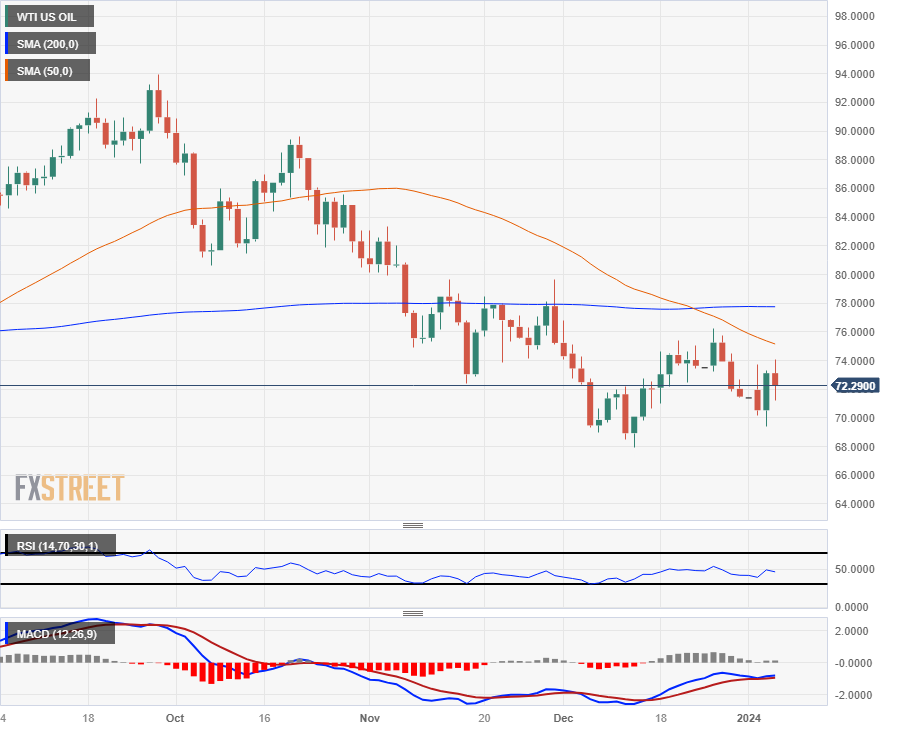 WTI remains on the low side of the 200-day Simple Moving Average (SMA) near the 78.00 handle, and despite finding a technical floor at $68.00 in mid-December, WTI US Crude Oil remains down over 23% from August’s peak bids near $94.00 per barrel.