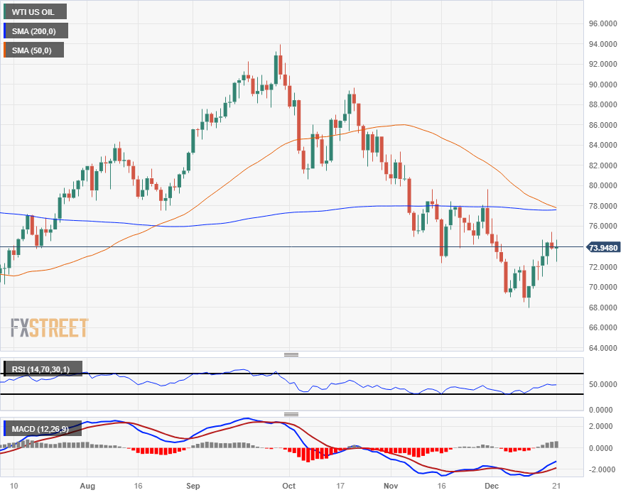 WTI’s dip-and-bounce on Thursday has Crude Oil prices near where the day started just below $74 per barrel, and US Crude Oil is bidding down from yesterday’s peak of $75.40.
