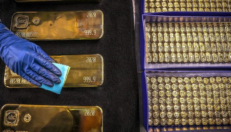 Gold futures hovered near unchanged early Thursday, with investors awaiting cues from economic data and a busy calendar of speeches by Federal Reserve officials.