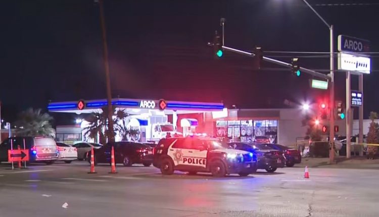 The shooting occurred around 5:34 p.m. in the area of Charleston and Honolulu, police said at a news briefing. Officers responding to the scene found five men at the encampment suffering from gunshot wounds.