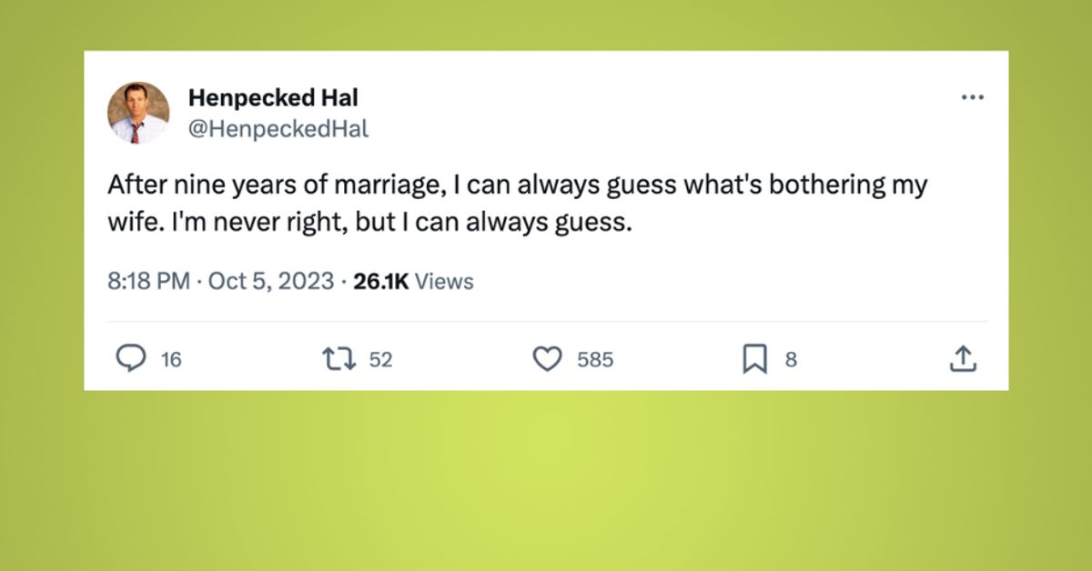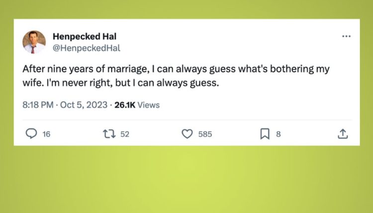 Somehow married people on X, formerly known as Twitter, continue to find humor in the minutiae of wedded life. Every week, we round up the funniest marriage tweets on the platform. Read on for 20 relatable ones that will have you laughing in agreement.
