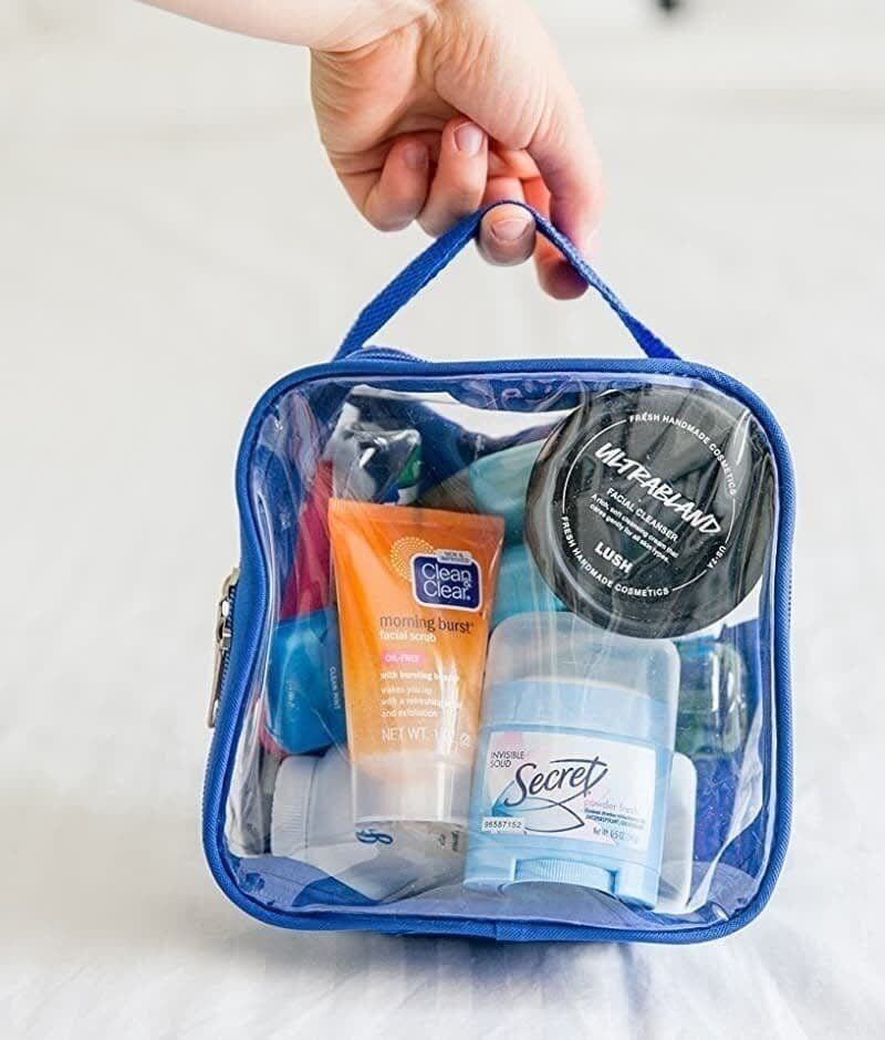A clear TSA- approved toiletry bag to keep all your travel-sized liquids in one place you can easily find when you reach security.
