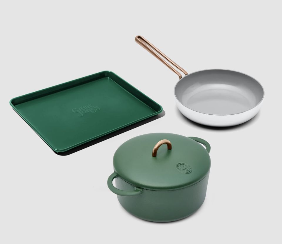Great Jones’ The Starting Lineup — a Dutch oven, frying pan, and sheet pan — for $90 off list price