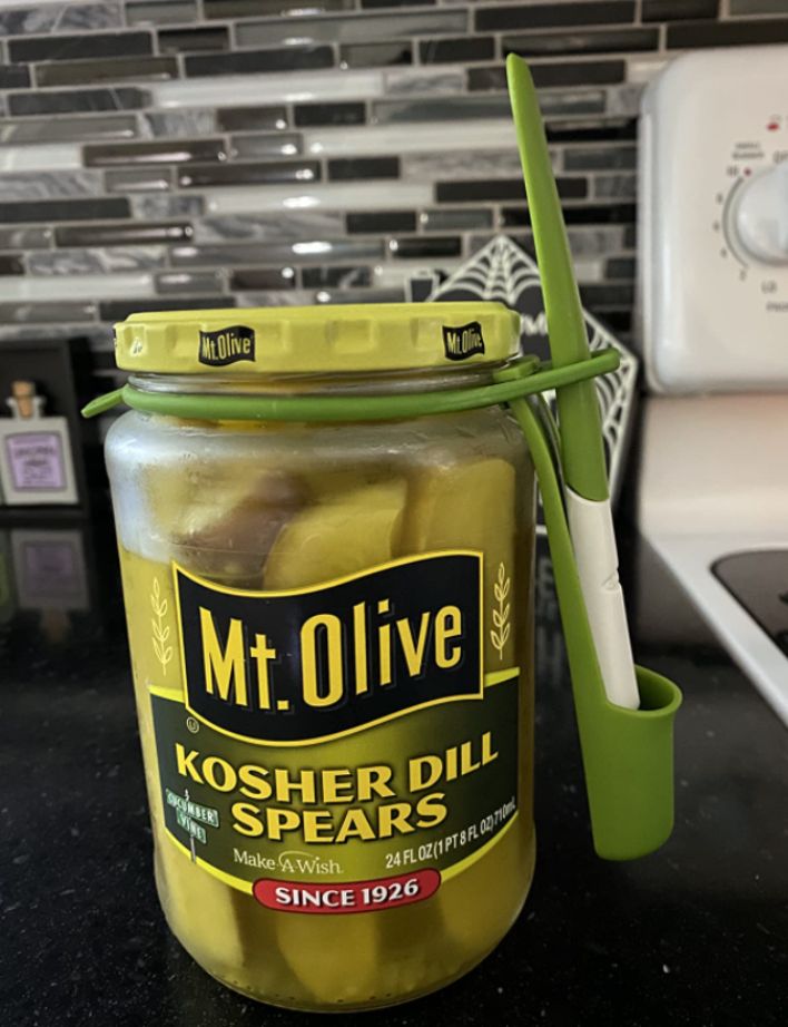Promising review: “Great kitchen item. Forks are great to get pickles out of the jar, but if you have kids/lazy people (lol) you know that dirty hands are going into that jar. 😉 This has really prevented that from happening. It comes with two different rings to fit whatever size jar, a stabber holder, and a stabbing stick.” — Amazon customer