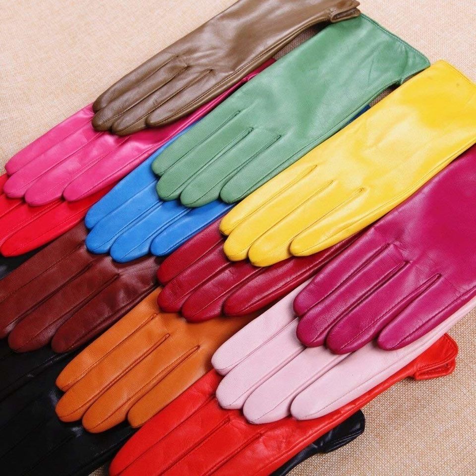 A pair of touchscreen leather gloves lined with a cashmere blend