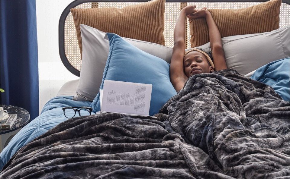 A plush faux-fur and sherpa blanket designed to look like sumptuous fur