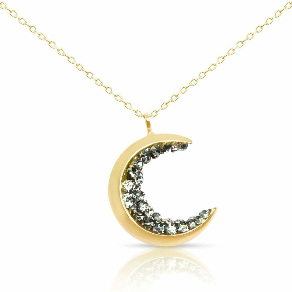 An 18-karat gold-plated delicate crescent moon pendant with chunky gray stones