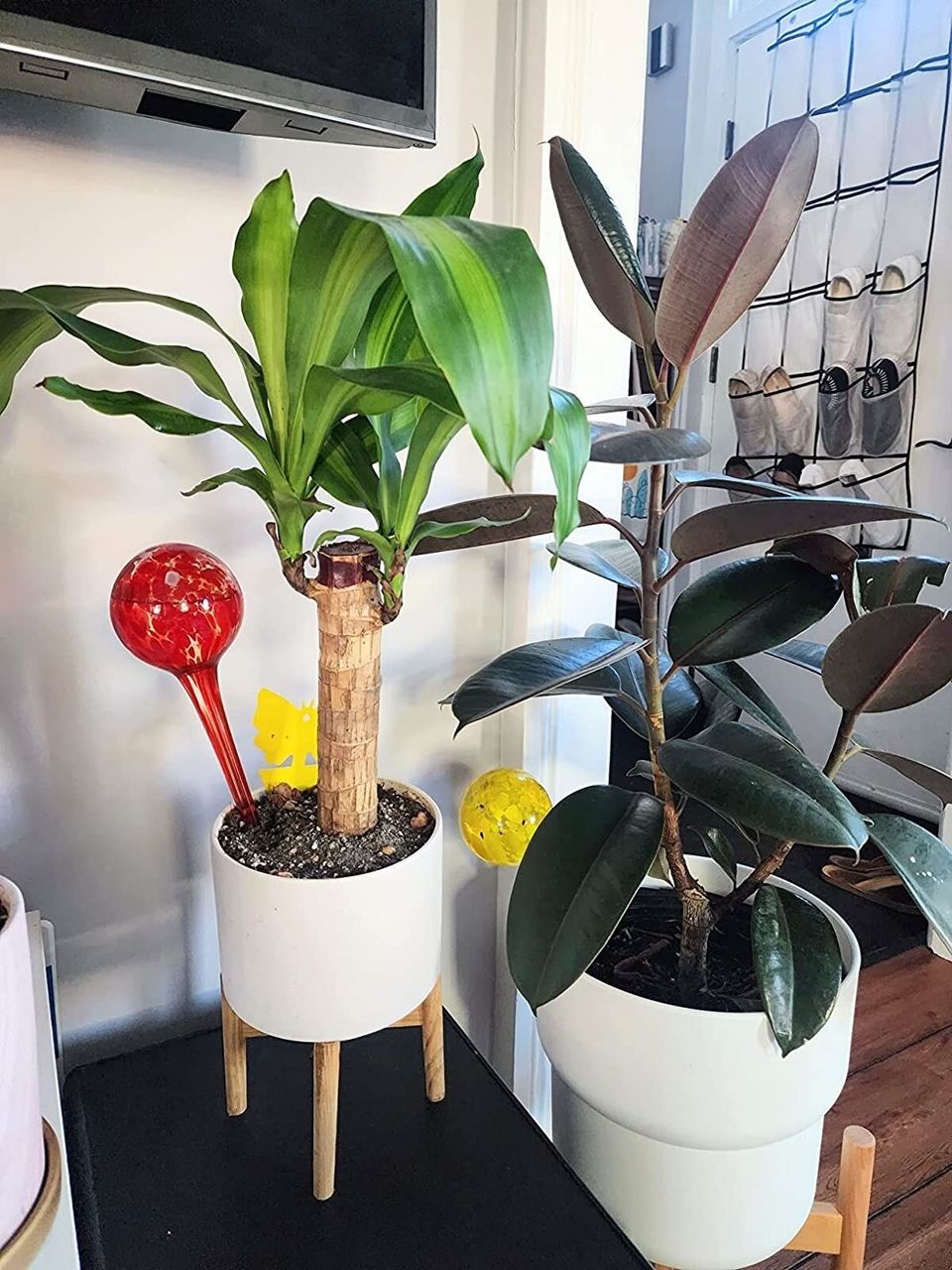 “These are amazing! I bought them for a two-week trip and have left them in permanently because of how happy my plants looked. They do a better job of watering my plants than I do! These are a great size for larger pots or thirsty plants. I read some reviews saying they are hard to fill but I haven’t found that to be the case. Just tip it at an angle like a wine glass and use low water pressure.” — Amazon Customer