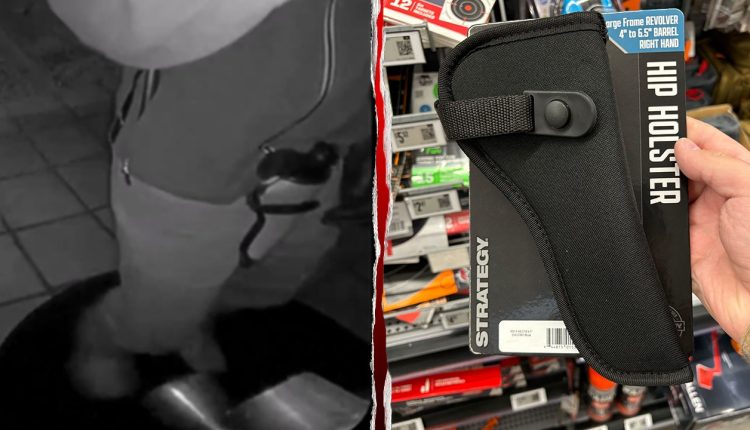 The officer, who asked not to be named, told Fox News Digital that the holster’s seemingly light-colored appearance is misleading since it appeared in an infrared recording. The main panel consists of a different material from the piping, he said. But the shape and other details align with a Strategy brand hip holster available at some Walmart stores for around $10.