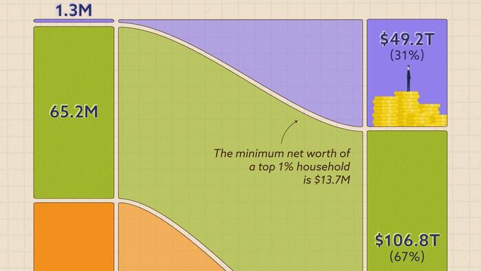 The rich half own about $156 trillion (or about 98% of it). The poorer half only own about $4 trillion.