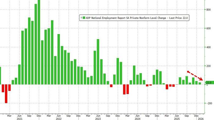 While we will not be getting the payrolls report this week (due to a very brief govt shutdown), ADP’s Employment report paints a poor picture for hiring (even if jobless claims paints a healthy picture for ‘not firing’) adding just 22k jobs (well below the 45k expected).