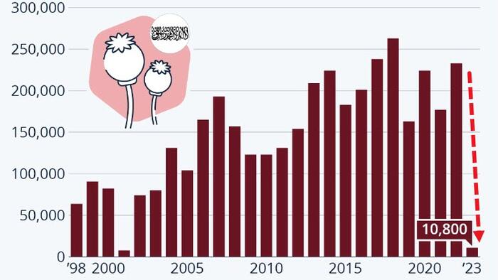 According to the new Afghanistan Opium Survey by the United Nations Office on Drugs and Crime, 2023 marks a steep departure from this narrative, as cropland used for opium poppy growing was down 95 percent since last year.