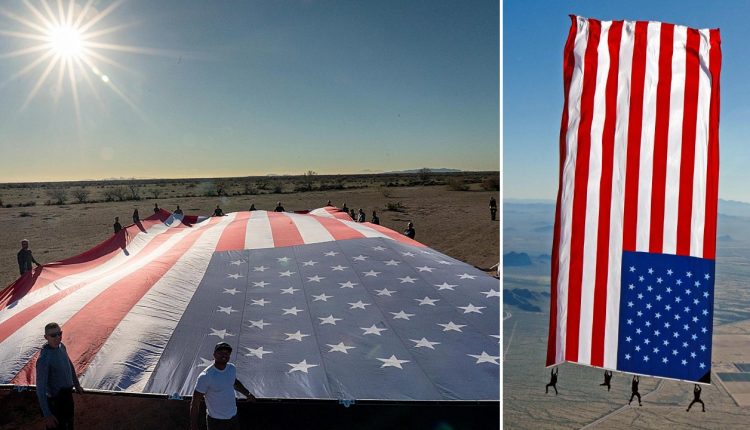 Denman said no one had ever attempted to fly a flag of this size before, creating “a lot of unknowns” and making the record-setting jump “a pretty scary one.”