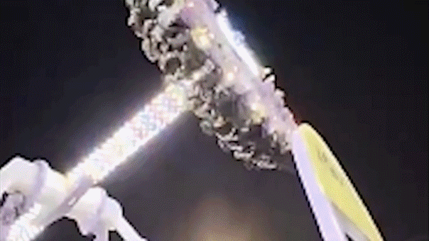 Video of the incident shows the ride with “360 degrees” written atop it swinging back and forth before the arm with the spinning wheel carrying passengers snapped off the frame of the ride.