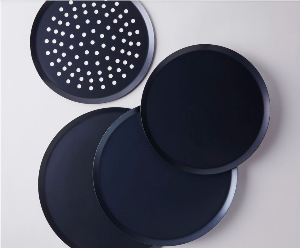 This round pan comes in three sizes and a perforated option for each size, and can be used for pizza (for a crispy, perfectly golden crust), tarts, roasted vegetables, pie and more. It’s made of 100% blue steel, which gets darker and more nonstick with every use. For an extra crispy pizza crust, go for the perforated version, but the non-perforated pan has more versatile applications.