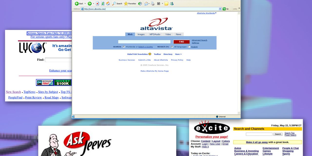 As in such once-prominent search engines as AltaVista, Excite, Lycos, WebCrawler and even one called Ask Jeeves.