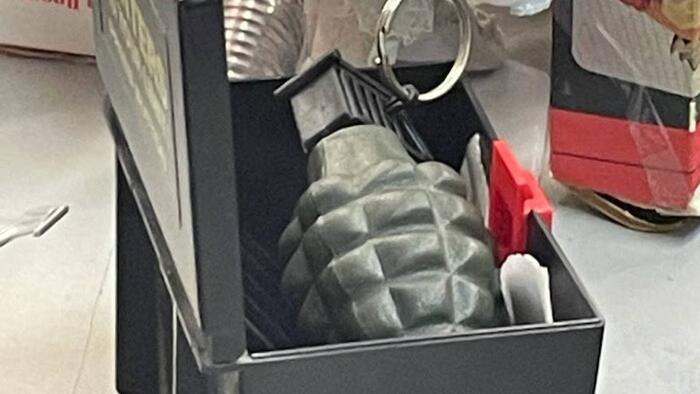 As for the above narrative account, it’s hard to imagine a “shot glass” resembling a grenade would lead to confusion with real “grenades” also present in the same gift. And why would a pin then be pulled? Possibly, he thought they were realistic looking ‘toy grenades’ or some type of gag gift.
