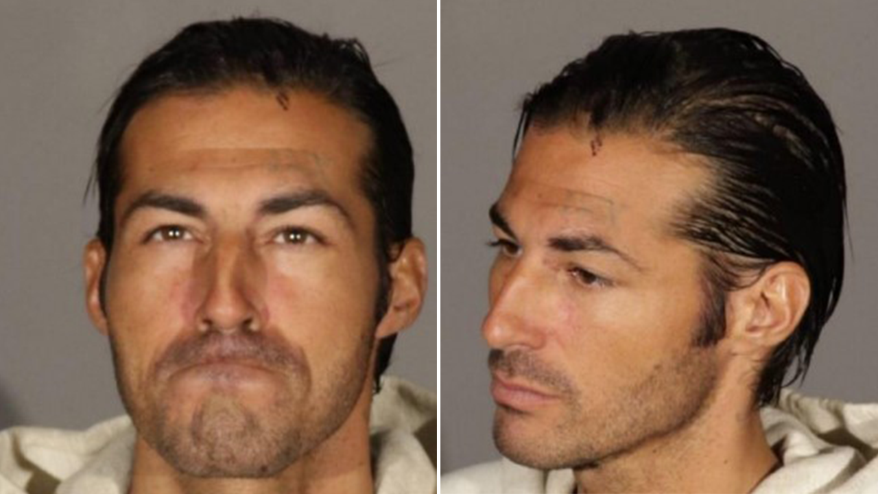 The suspect has a faint tattoo above his left eyebrow, police said.
