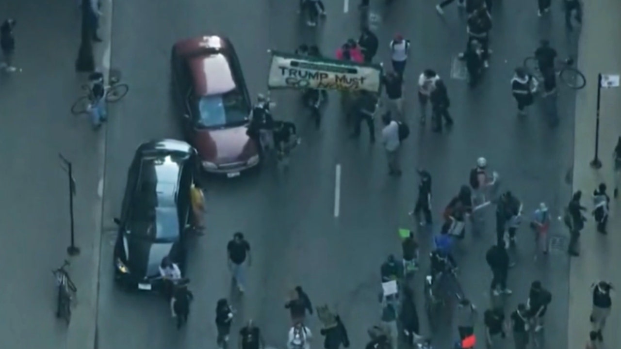 Car drives through anti-ICE protesters as Chicago joins nationwide anti-ICE unrest amid Trump crackdown