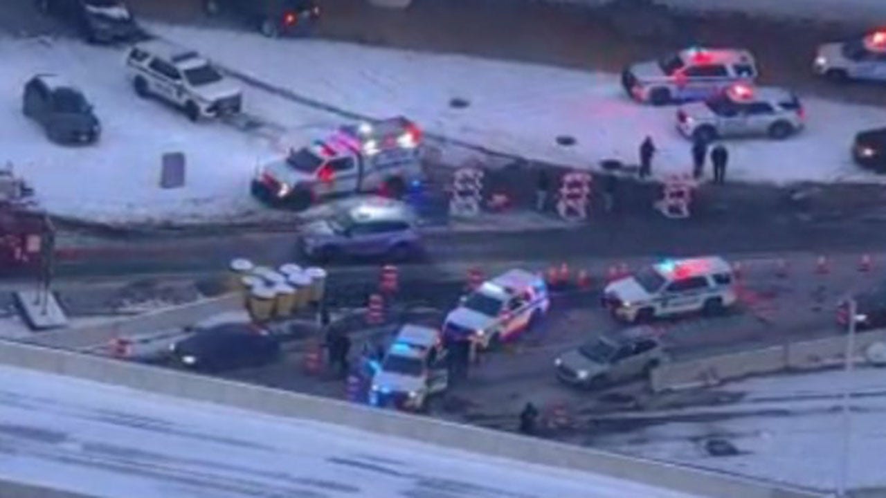 The incident occurred on the Van Wyck Expressway around 4:45 a.m. near an airport entrance, KABC-TV reported.