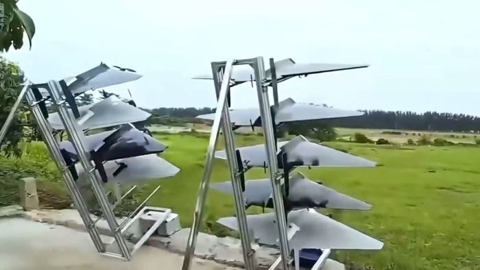 The drone costs around $3000 RMB per unit, has a 20-30km range, flies at 200km/h, launched by hand or simple launch racks.