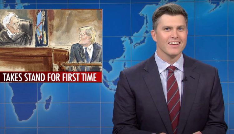 “Former president and current courtroom sketch model Donald Trump,” said Jost as he spoke next to a sketch and noted that Trump testified on the witness stand for the first time in over a decade.
