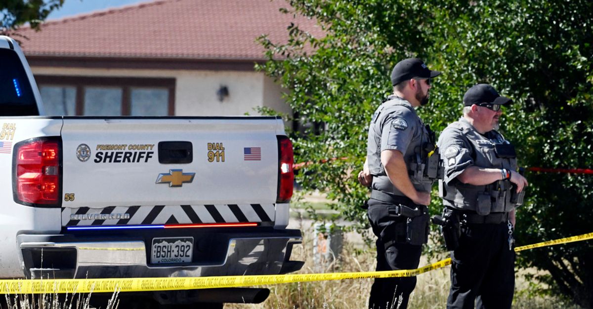Fremont County deputies guard the road leading to the Return to Nature Funeral Home in Penrose, Colo. Thursday, Oct. 5, 2023.