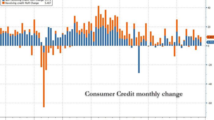 After several months of wild swings, moments ago the Fed published the latest consumer credit report (G.19) and it was quite tame by recent volatile trends.