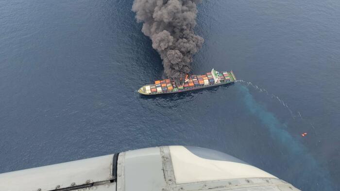 The fire poses a significant risk of further explosions and potential structural compromise. Any drifting containers or subsequent hazards to navigation will be assessed only after Coast Guard ships return after rescue operations. All nearby traffic has been alerted to maintain safe CPA and speed reductions in the vicinity, the officials said.