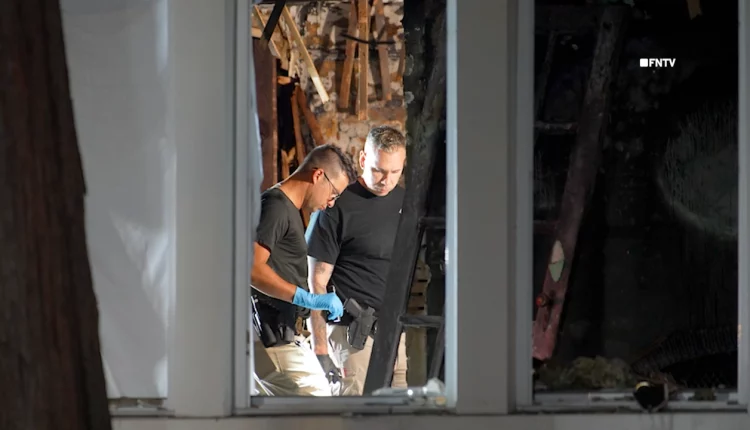 Images also show fire marshals, homicide detectives and investigators from the city medical examiner’s office at the scene, scouring through scorched evidence inside and outside the home.
