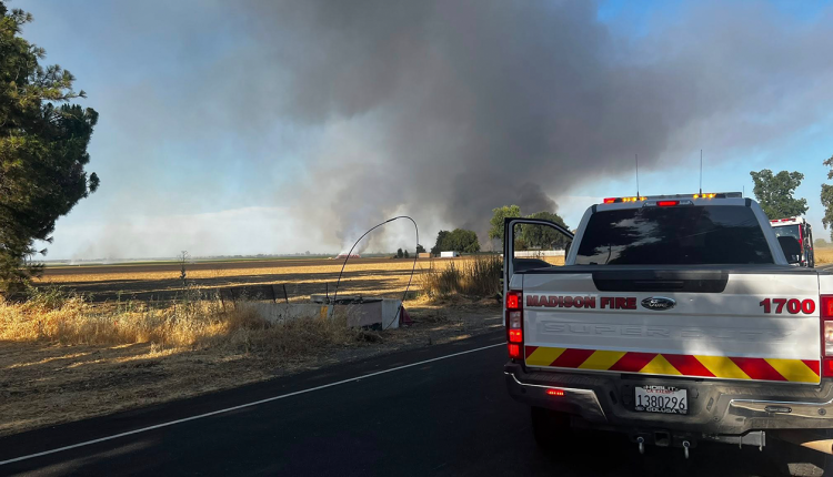 Fire crews responded to the blaze along County Road 23 and County Road 86A in Esparto, California, shortly before 6 p.m.