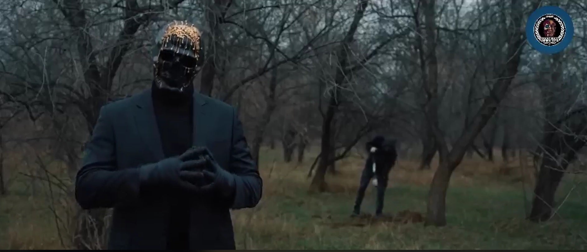 The 58-second clip, which was meant for the dark web, opens with a person – who goes by “Sanchez” – covered head to toe in black clothing and speaking behind a black skeleton mask with someone else who appears to be digging a grave behind him.