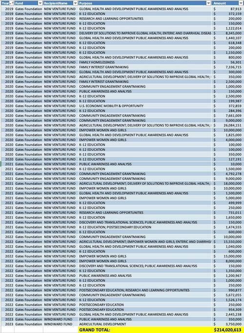 Summary of the Gates Foundation’s distribution to the Arabella empire.