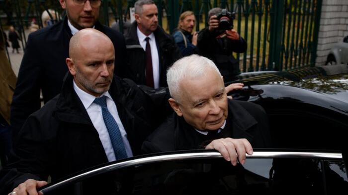 Poland’s conservative ruling Law and Justice party leader, Jaroslaw Kaczynski, gets in a car after voting during parliamentary elections in Warsaw, Poland, Sunday, Oct. 15, 2023. (AP Photo/Michal Dyjuk, File)