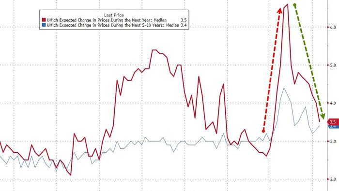Inflation expectations for the next 12 months plummeted to 13-month lows (while medium term expectations rose modestly)…