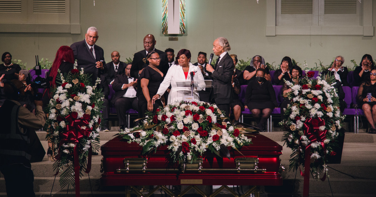Civil rights leaders flew in from around the country for the service Monday. Several elected officials, including a member of Congress, found seats in the church audience alongside grieving family members. A gospel choir sang of hoping for better days to come, flanked onstage by 15 ornate flower bouquets, including one shaped in the initials of the man whose violent death and discreet burial had sparked a national outcry: “DW.”