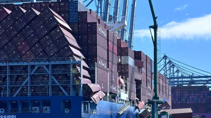 Aerial footage from local outlet ABC7 shows containers scattered across the harbor.