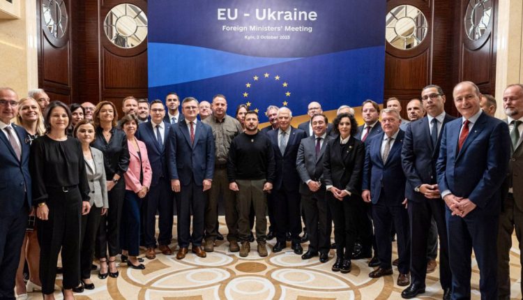 “This joint meeting of European Union foreign ministers with Ukraine in Kyiv should be understood as a clear commitment of the European Union to Ukraine and its continuous support in all dimensions — support for the military, support for a just peace, accountability and working for the membership path,” he told reporters after the meeting.