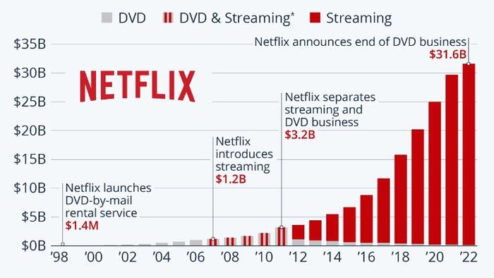 And while Hasting’s big bet on streaming was controversial at the time, it did pay out handsomely, as Statista’s chart illustrates.