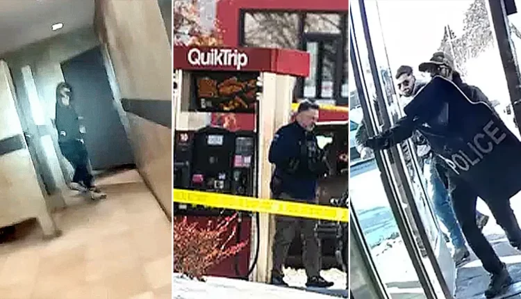 Responding police tracked Ayala-Ramos’ vehicle to a QuikTrip gas station, where he barricaded himself inside a bathroom stall. Body camera footage shows him emerging from the stall and firing at officers positioned near the entryway.