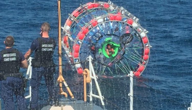 Coast Guard officials arrested a Florida man after they intercepted his unusual hamster wheel contraption that he was allegedly attempting to ‘run’ to London.