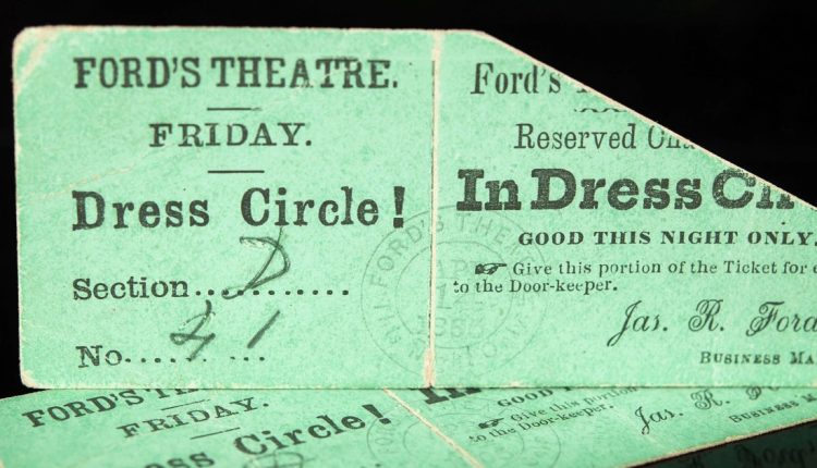 BOSTON — A pair of front-row balcony tickets to Ford’s Theatre on April 14, 1865 — the night President Abraham Lincoln was assassinated by John Wilkes Booth — sold at auction for $262,500, according to a Boston-based auction house.