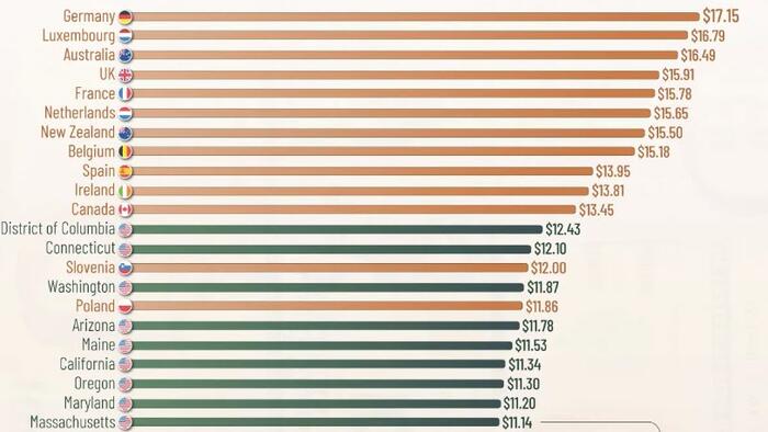 Ranked: Minimum Wages in All U.S. States & 35 Countries