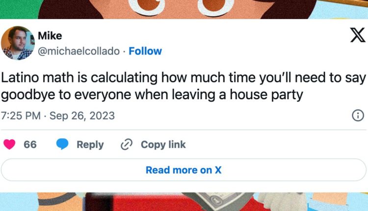 It’s also refreshing to find that Latino goodbyes (the opposite of Irish goodbyes) are a common experience among us.