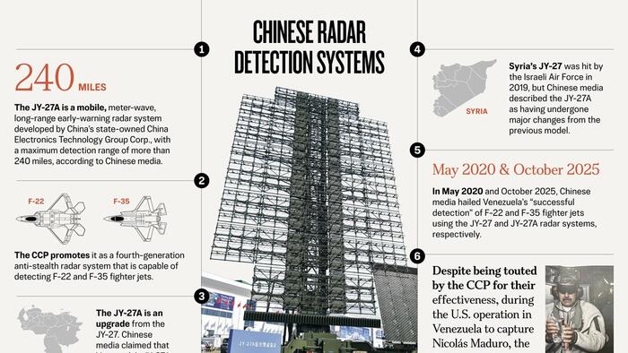 The raid raised uncomfortable questions for Beijing about the limits of the Chinese-supplied systems that Venezuela has leaned on—especially “anti-stealth” radar that China advertised as capable of spotting and stopping U.S. stealth aircraft, a military analyst said.